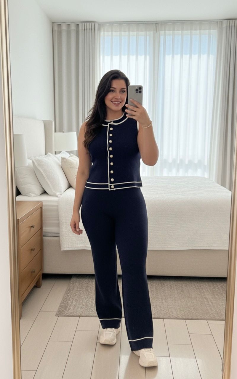 Set elegante sin mangas con ribetes