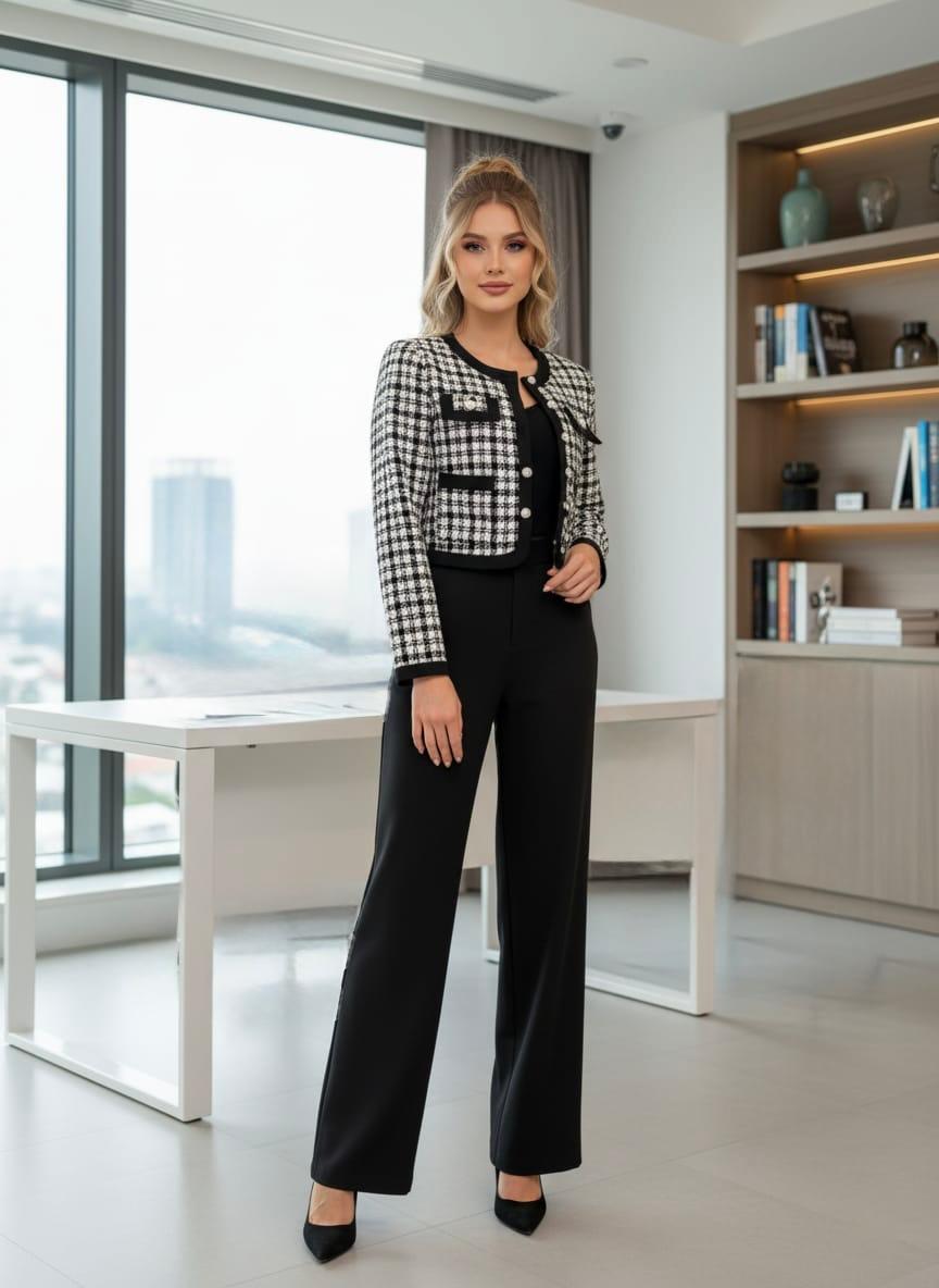 Set elegante con ribetes en contraste