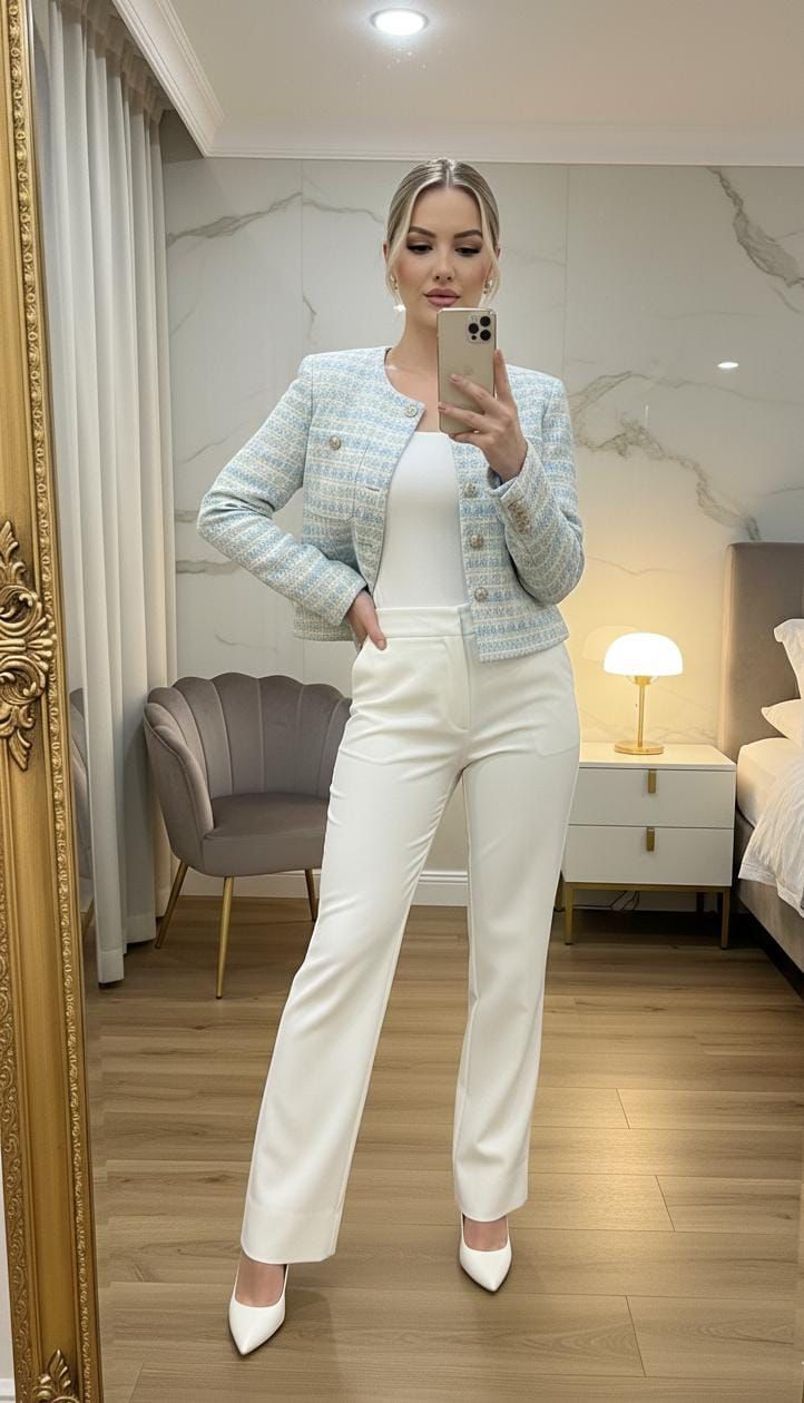 Blazer tweed con botones perla